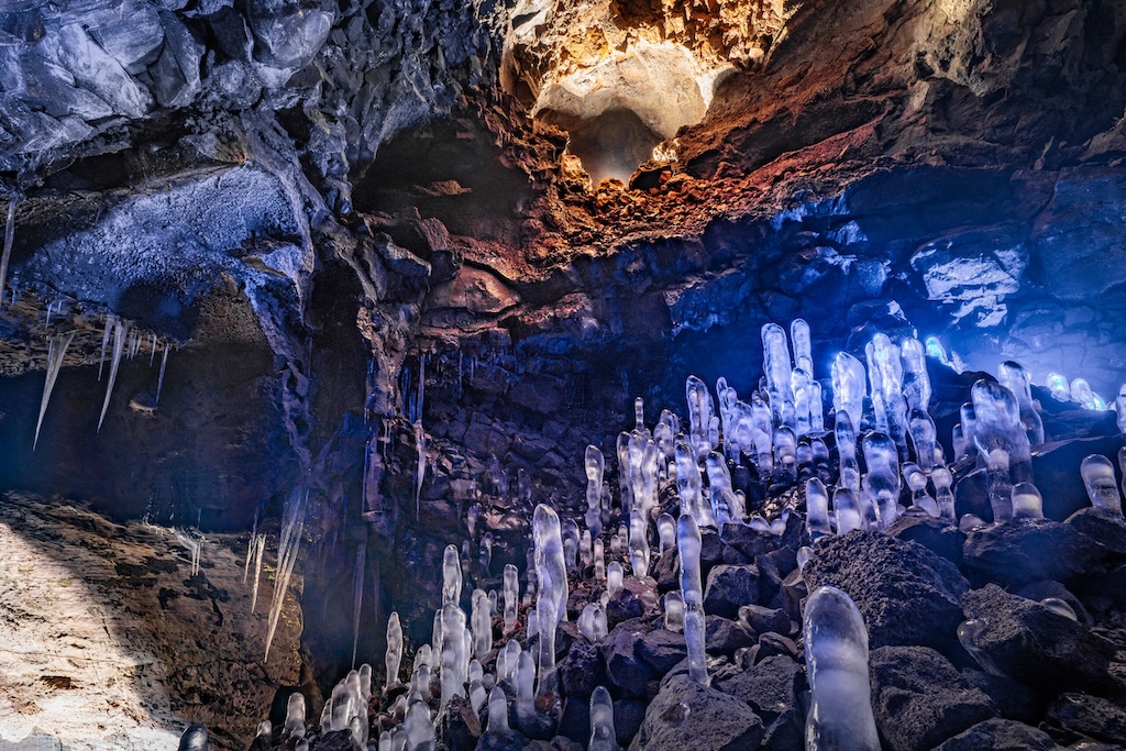 Hallmundarhraun is een immens uitgestrekt lavaveld in de omgeving van Húsafell in westelijk IJsland. In dit uitgestrekt gebied bevindt zich Víðgelmir, een van de best bewaarde lavatunnels van IJsland en zelfs van de wereld! Locals bieden een begeleide tour aan over een houten wandelpad waarbij je je door lavatunnels van de ene grot naar de andere begeeft. Het gemakkelijk toegankelijke pad is verlicht en onthult een magische onderwereld van bijzondere rotsformaties en speciale kleuren. Aanrader voor al wie interesse heeft in geologie. De tour duurt anderhalf uur en er zijn meerdere vertrekken per dag.